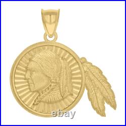 10kt Yellow Gold Native American Indian Chief Fashion Charm Pendant